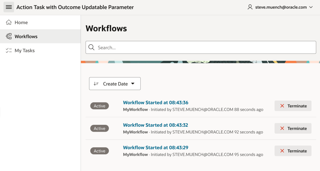 In the Workflows page, you can see the three workflow instances you created.