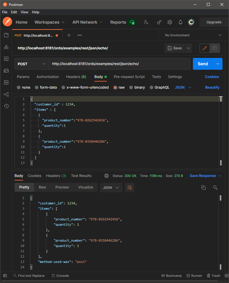 I used the @unnest annotation to pull properties like categoryId and category up to the same level in the JSON as name, price, and available. I’ve also used it to pull the warehouseId and warehouse properties up to the same level as quantity. Without using this annotation, the properties from a related object will appear as a “nested” JSON object with an appropriate property name. The choice is up to the developer.